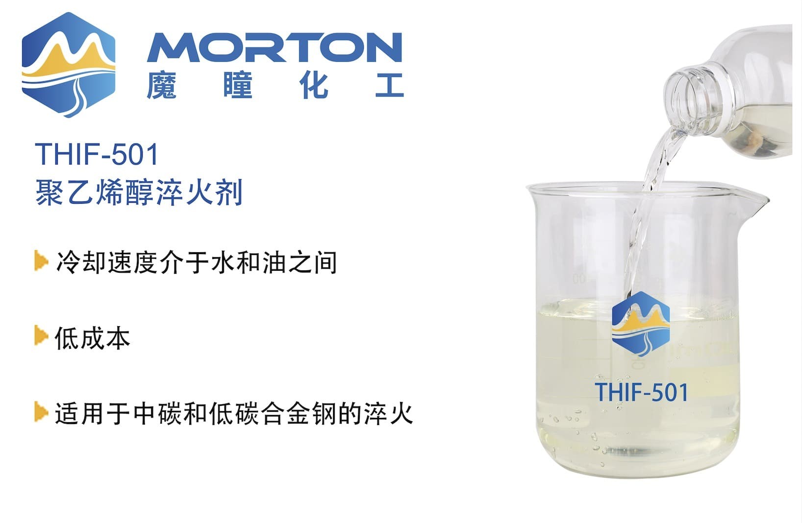 聚乙烯醇淬火剂为淡黄色半透明浓缩液,它克服了水冷却速度快,易使工件开裂,油品冷却速度慢,淬火效果差且易燃等缺点,使用前要根据工件淬火工艺要求,加入一定比例的清水稀释,可得到介于水和油之间可随意调节淬火性能,而且价格低廉,使用范围很广。