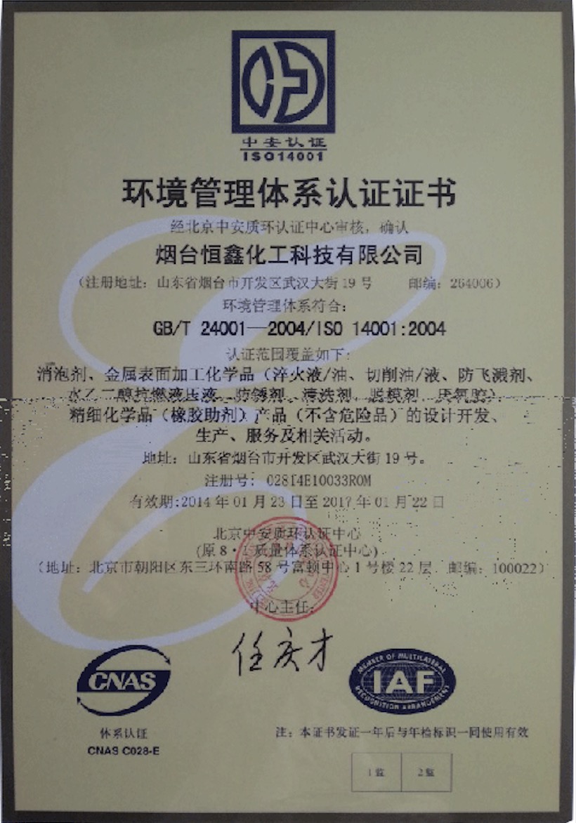 魔瞳化工通过ISO14001环境管理体系认证